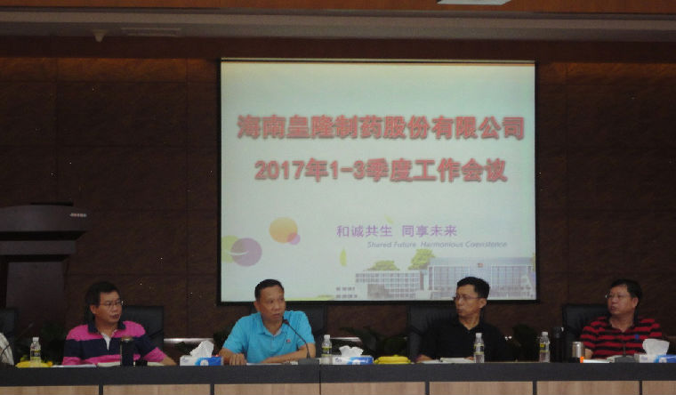 在這個寓意希望和豐收的季節(jié)里,海南皇隆制藥股份有限公司2017年前三季度工作報告分析會于14日在公司二樓大會議室召開,會議由陳益智總經(jīng)理主持,部門負(fù)責(zé)人及以上人員出席會議。