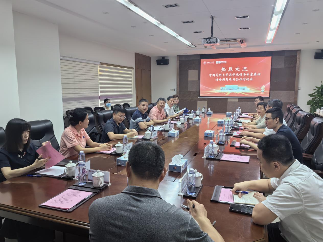 揭牌儀式結(jié)束后,中國藥科大學(xué)藥學(xué)院黨委書記張仕英一行與海南省醫(yī)藥行業(yè)協(xié)會、海南藥企就海南新藥項目的合作事宜開展座談。海南齊魯制藥等多家藥企負(fù)責(zé)人參加座談。