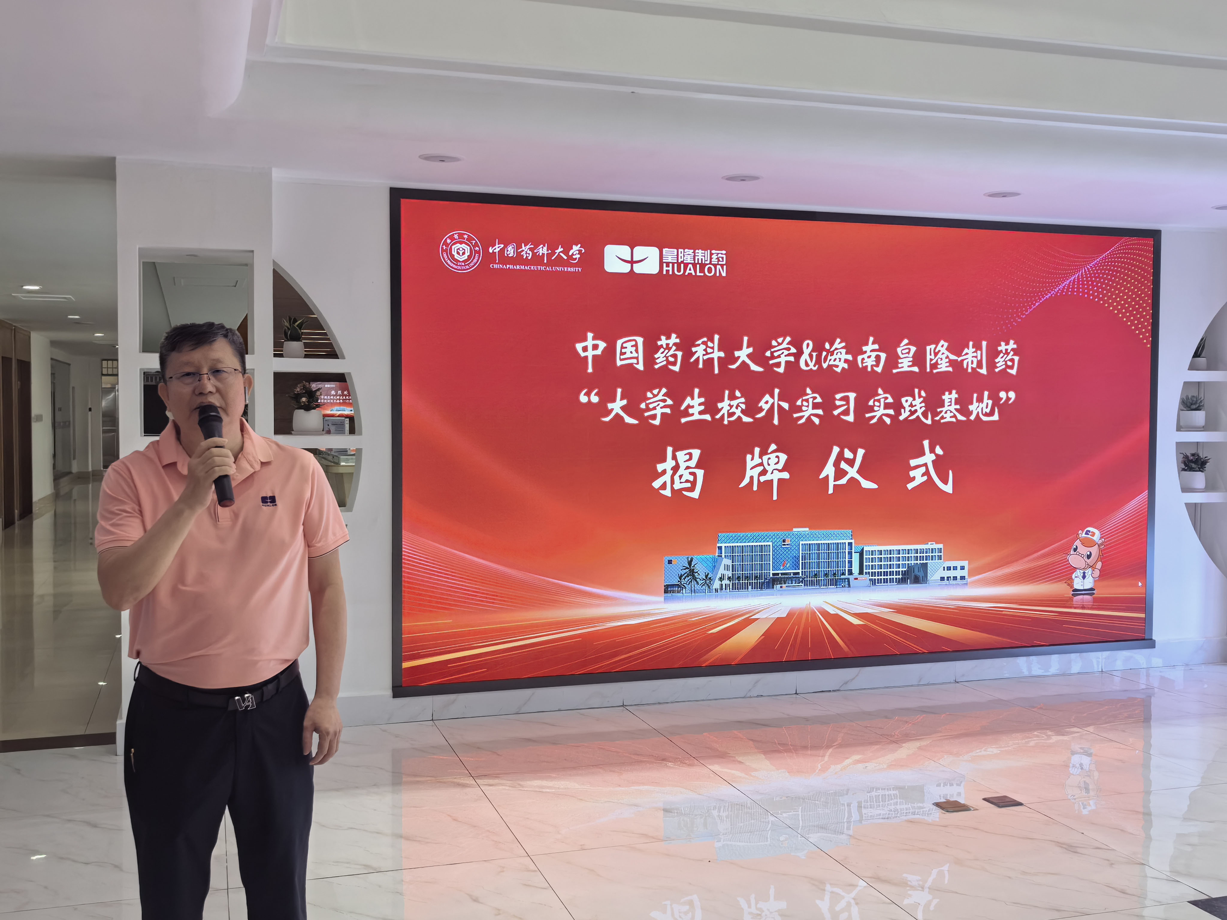 7月29日,中國藥科大學(xué)“大學(xué)生校外實習(xí)實踐基地”揭牌儀式在海南皇隆制藥股份有限公司舉行。中國藥科大學(xué)藥學(xué)院黨委書記張仕英與海南皇隆制藥股份有限公司董事長陳益智分別代表合作雙方揭牌。揭牌儀式由海南皇隆制藥股份有限公司常務(wù)副總經(jīng)理史江永主持。